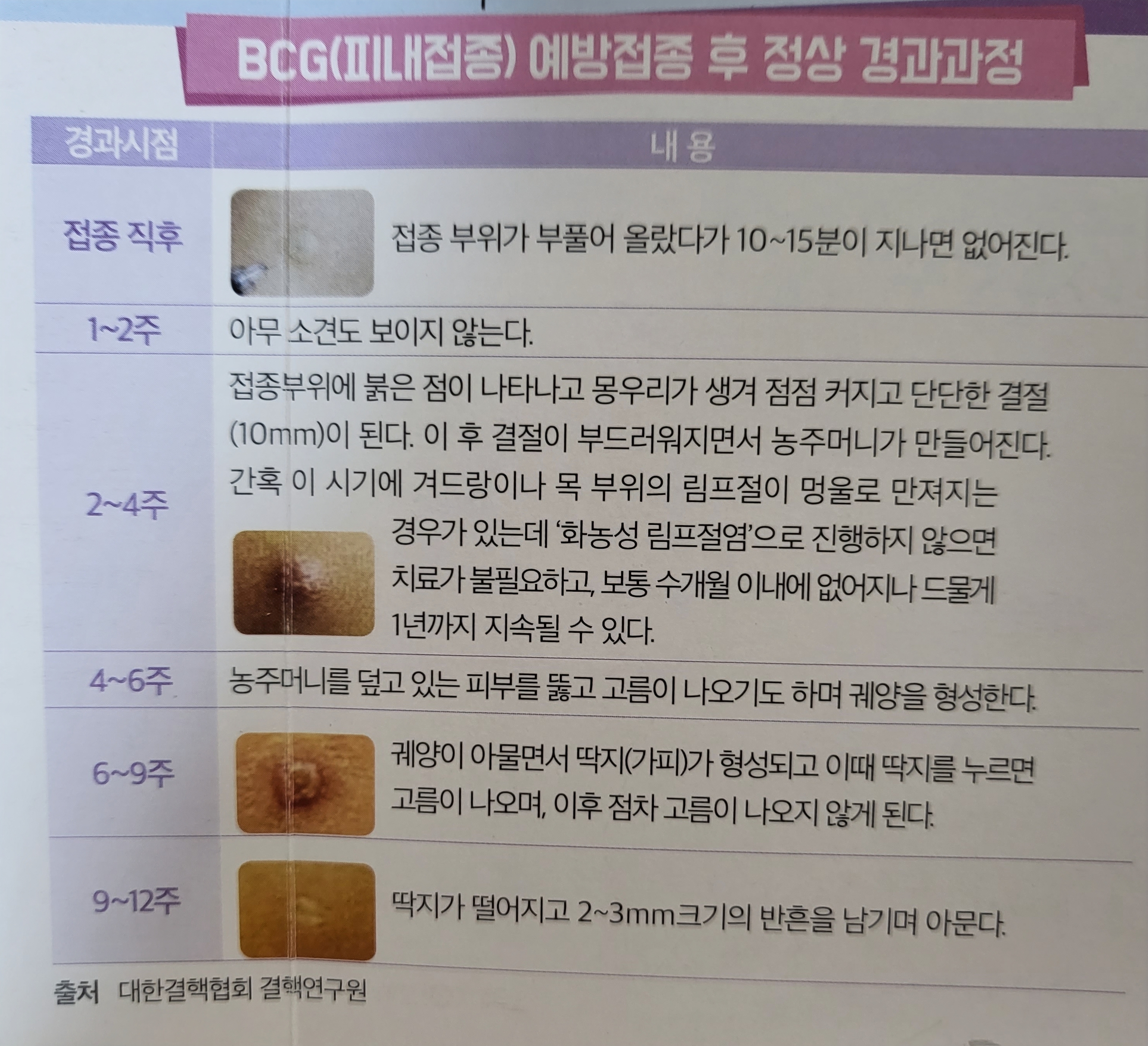 결핵 예방접종 후 나타날 수 있는 이상반응