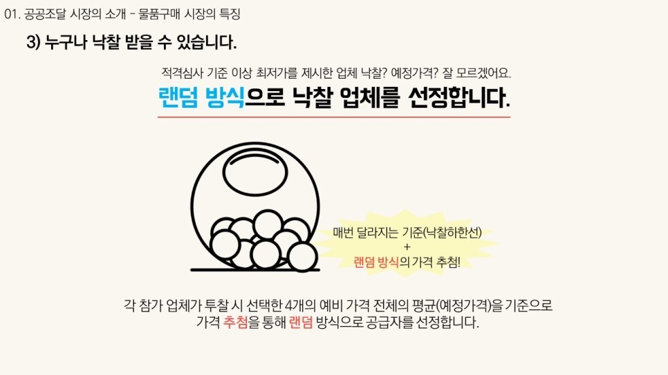 3. 공정성을 위해 랜덤 추첨으로 누구나 낙찰 받을 수 있다.