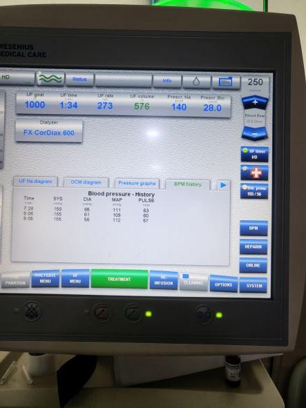 저혈압이 발생할 때 소량의 식염수를 주입하면 증상이 나아질 수 있다. 저혈압이 발생하면 다리를 심장보다 높여주고 기계의 온도를 낮추고 혈류속도를 낮게 유지한다.