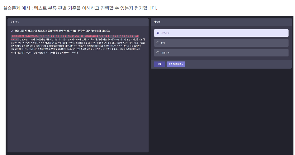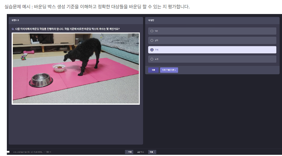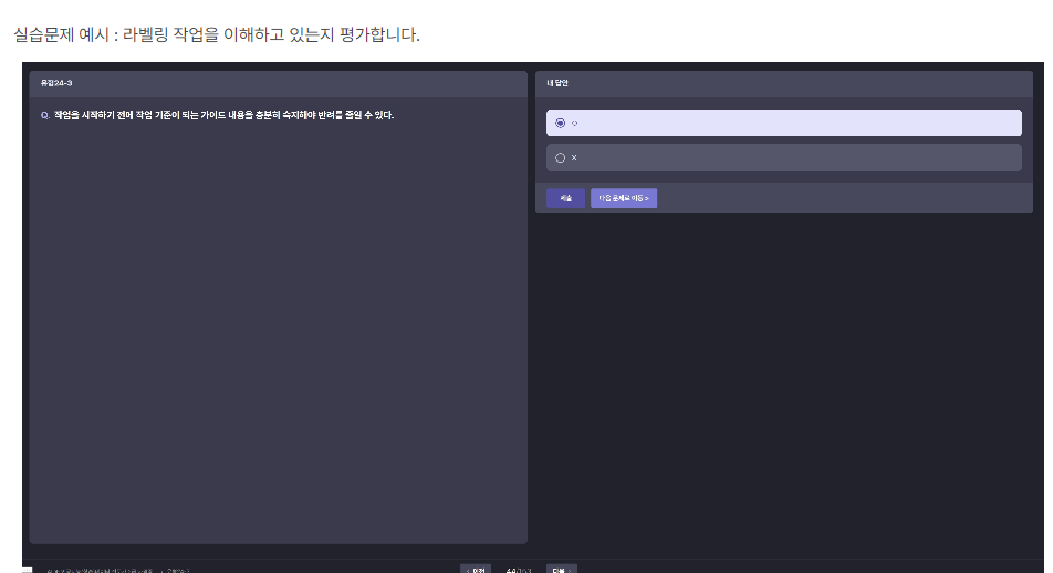 1. 교육 과정에 포함된 이론 및 실습 프로젝트를 바탕으로 작업 기준 및 라벨링에 대한 이해도 측정
