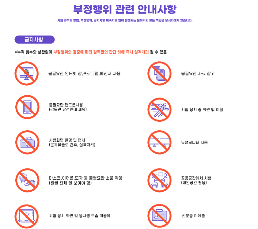 사전점검을 해봤어야 했는데, 시험 당일에 하려니 여러가지가 되지 않아 시험을 보지 못할뻔 했다. 다른 분들은 꼭 사전점검을 하길 바란다.